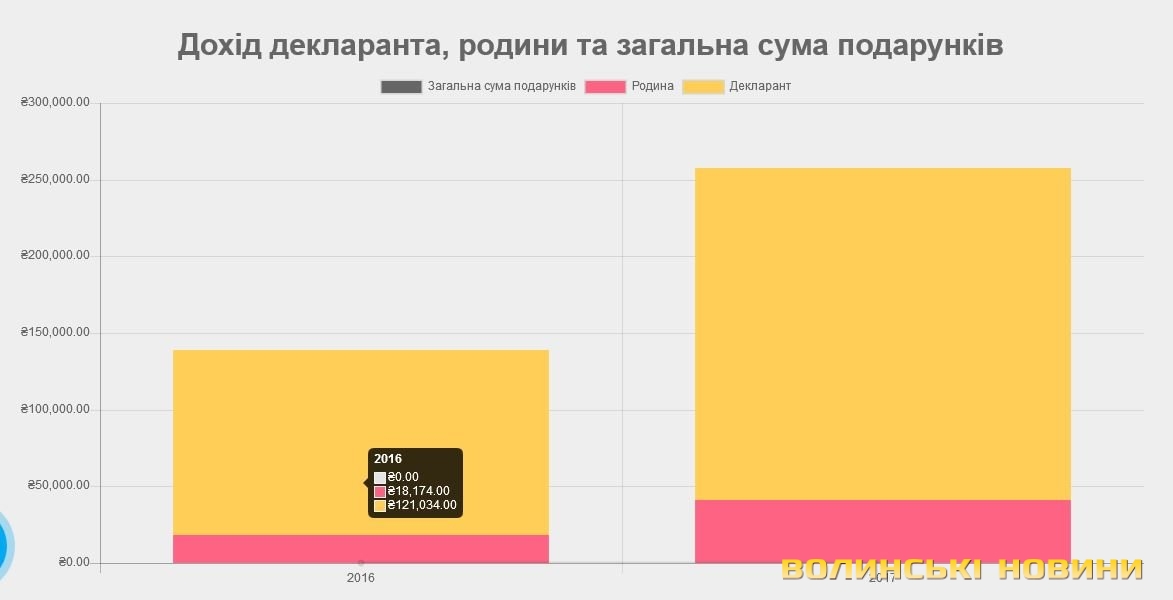 Заробітна плата директора департаменту інфраструктури та туризму Волинської облдержадміністрації Івана Мирки у 2017 році зросла на 95,734 тис. грн, тобто майже на 8 тис. грн на місяць.