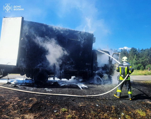 Близько 16-ї години у селі Дубище Рожищенської громади під час руху загорівся вантажний автомобіль. Горіння в моторному відсіку транспортного засобу ліквідували рятувальники з Рожища за 9 хвилин. Імовірна причина займання – коротке замикання електромережі.