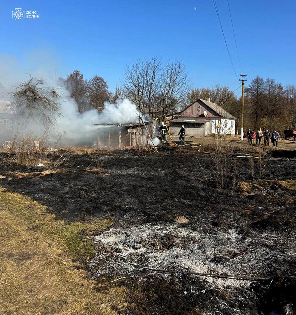 Через недбалість чоловіка 8 березня у селі Дідовичі Ківерцівської громади загорілись суха трава та чагарники. Потому вогонь перекинувся на цегляну господарську споруду.