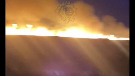 Як повідомили очевидці, горить велика територія сухої трави та очерету.
