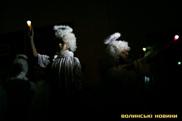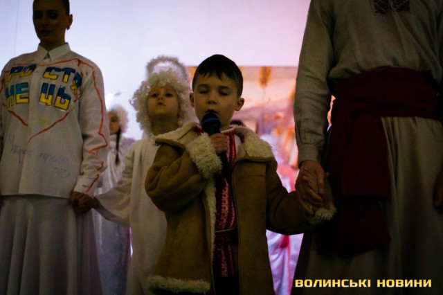 У своєрідній першій частині дійства – традиційній – під автентичні колядки у виконанні зразкового фольклорного колективу «Вервечка» переосмислюється біблійний сюжет народження Спасителя.Друга частина – дещо інша. Вона ґрунтується на подіях сьогодення. Християнські мотиви змінюють роздуми героїв вертепу про війну. Ця частина відбувається у співпраці з народним ансамблем бального танцю «Юність».Читати ще: «З Різдвом Христовим!»: у Луцьку відбувся XХІV фестиваль вертепів