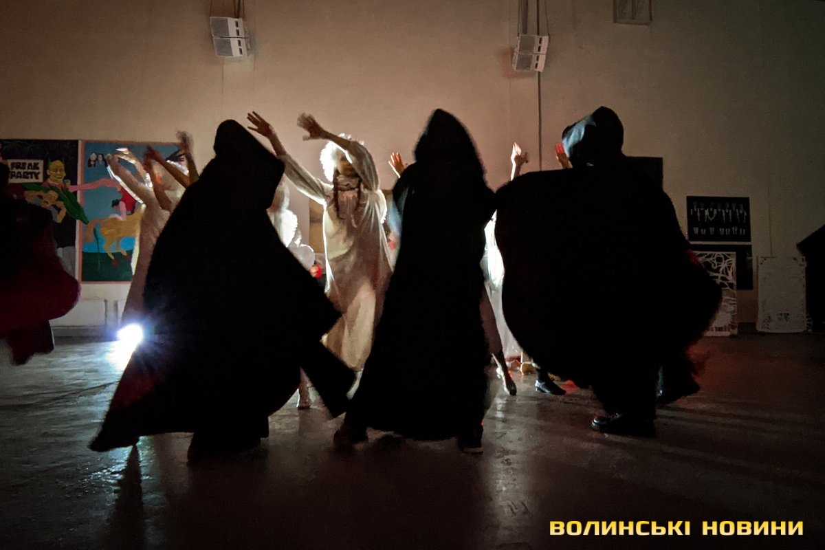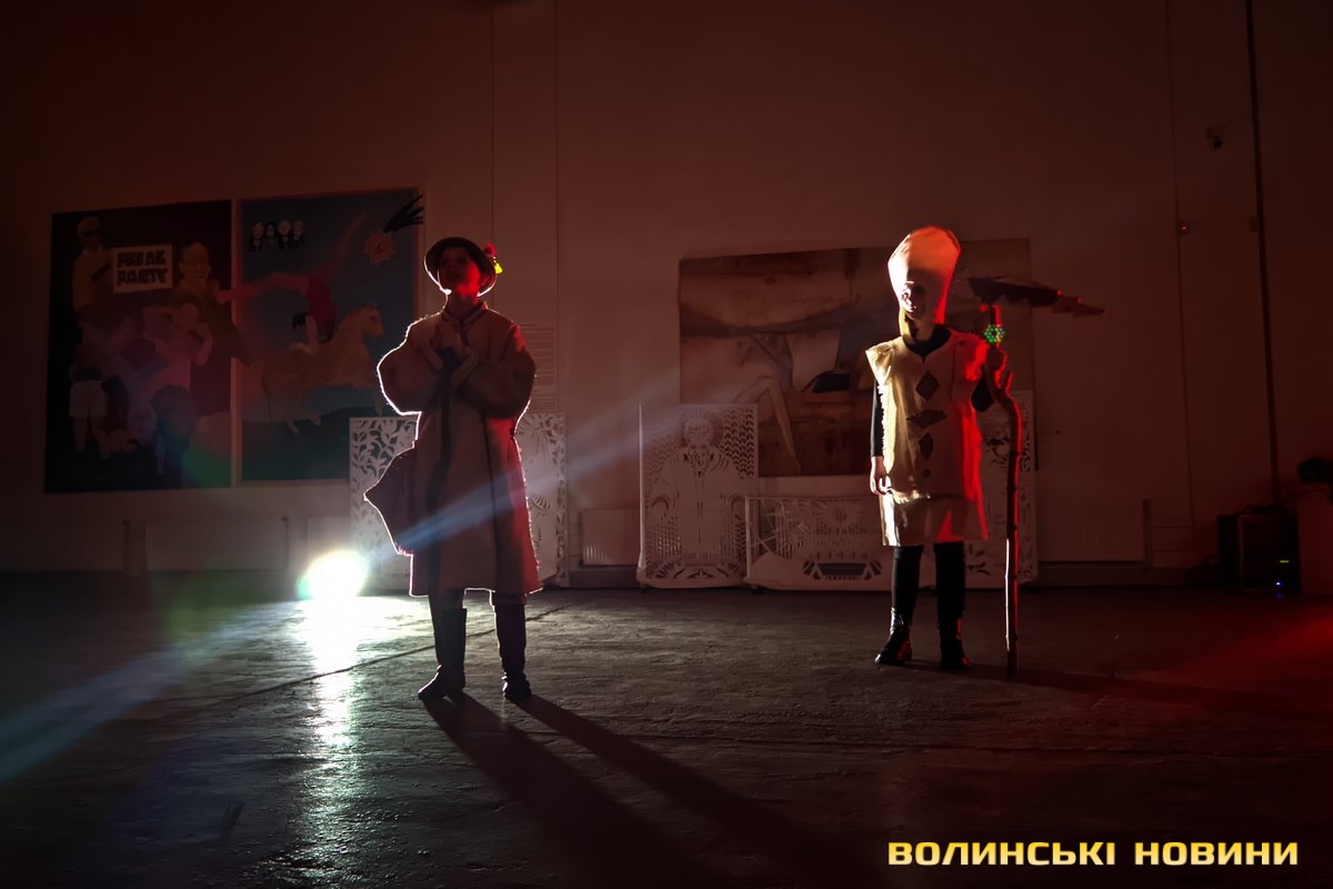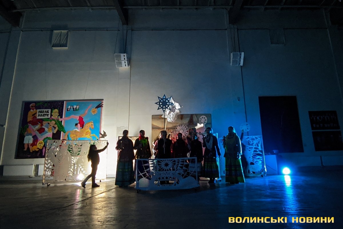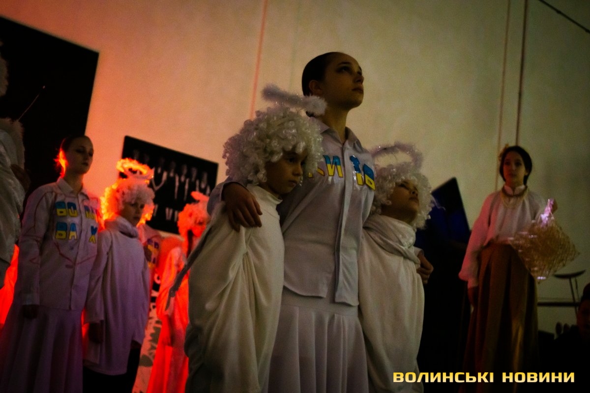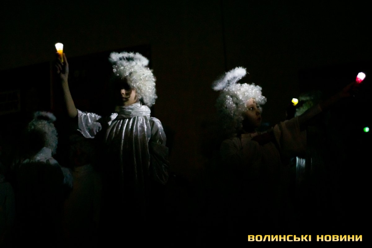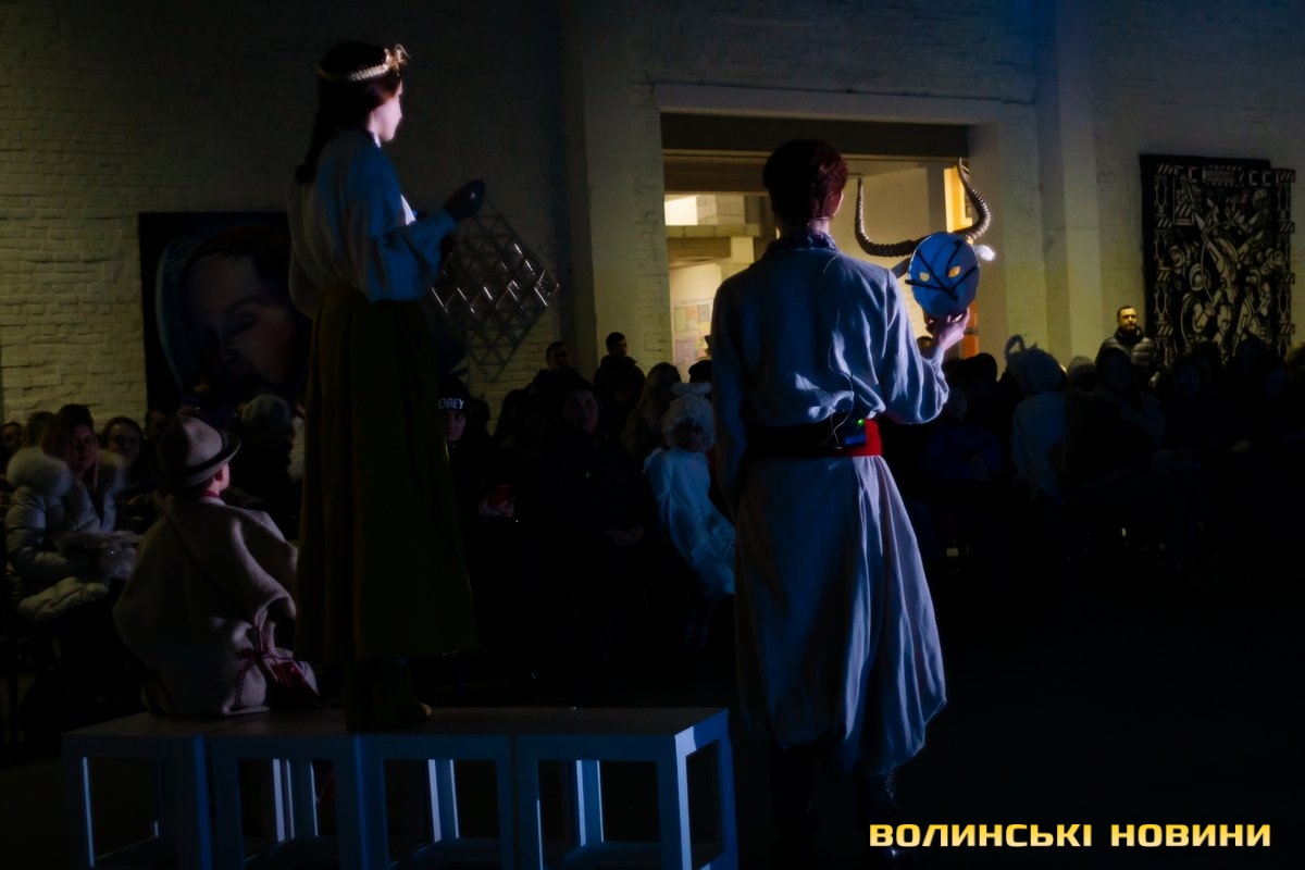 У своєрідній першій частині дійства – традиційній – під автентичні колядки у виконанні зразкового фольклорного колективу «Вервечка» переосмислюється біблійний сюжет народження Спасителя.Друга частина – дещо інша. Вона ґрунтується на подіях сьогодення. Християнські мотиви змінюють роздуми героїв вертепу про війну. Ця частина відбувається у співпраці з народним ансамблем бального танцю «Юність».Читати ще: «З Різдвом Христовим!»: у Луцьку відбувся XХІV фестиваль вертепів