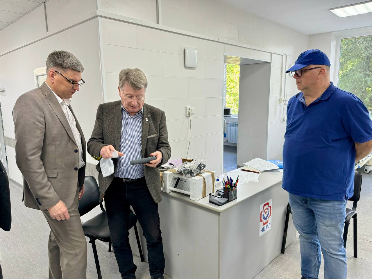 Гості з німецького міста Фронгаузен – Андреас Кремер, Даріуш Гжелінський і Рейнхард Бадзюра – передали дитячий відеоларингоскоп.