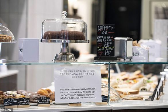 Також минулого тижня у кафе біля римського фонтану Треві розмістили оголошення про те, що «усім людям, які приїжджають з Китаю, заборонено відвідувати це місце».
