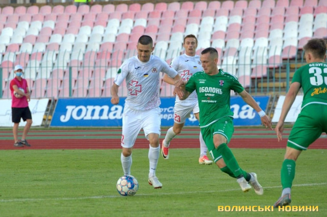 Команди виходили на поле не так, як зазвичай: спочатку на смарагдовому газоні з’явилися гості, а потім вже й гравці у білих футболках. Звичайно, традиційними рукостисканнями ніхто не обмінювався, що й не дивно – протокол безпеки через пандемію COVID-19. Заспівавши Гімн України, команди розпочали гру. Пусті трибуни зовсім не свідчили про те, що сьогодні у Луцьку – футбол, лише на найактивнішому 17-му секторі «Авангарду» висів традиційний банер з написом «ВОЛИНЯНИ». Ультрас зібралися підтримати «Волинь» за межами стадіону.Щодо гри, то вона у перші хвилини була в’язкою, а гравці обох команд частенько порушували правила. Однак зазначимо, що господарі намагалися більше володіти м'ячем та створювати бодай якийсь конструктив. Щоправда перший небезпечний момент створила «Оболонь», – гравець киян Ковбаса не влучив у ворота, після того, як обіграв Приндету.