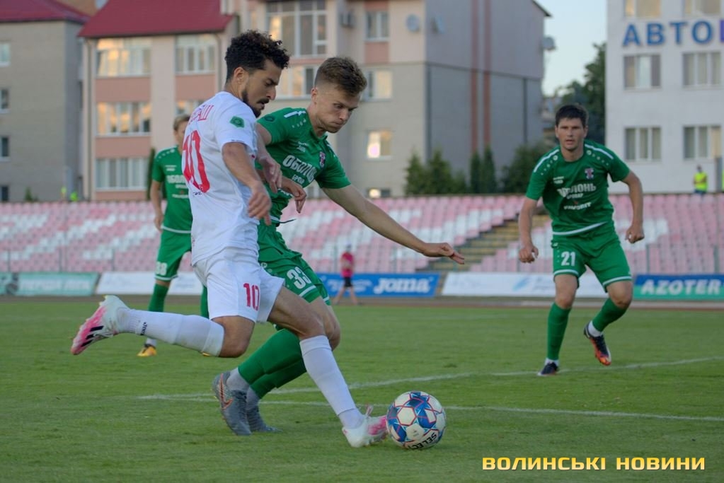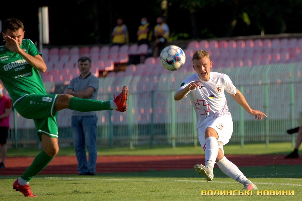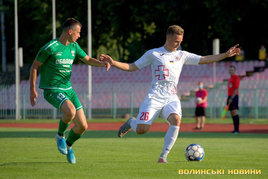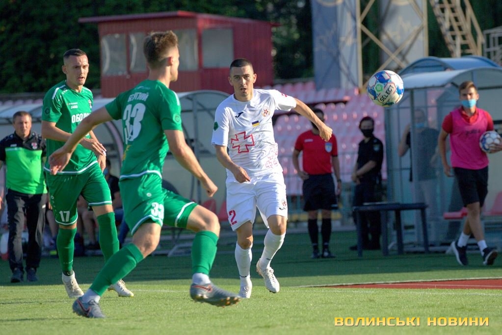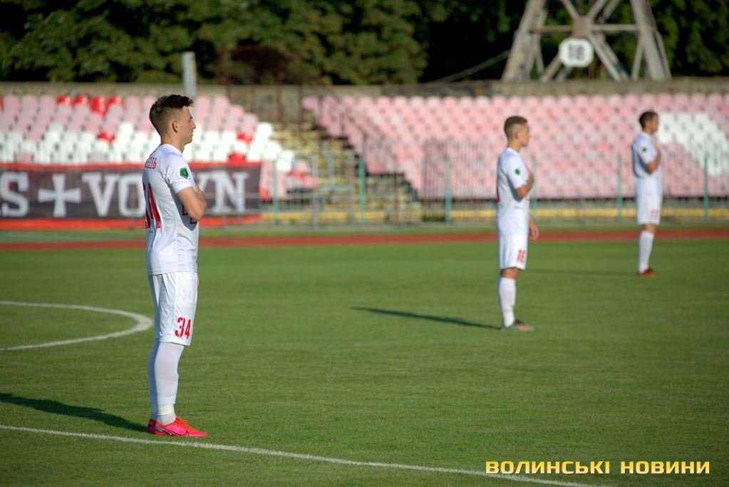 Команди виходили на поле не так, як зазвичай: спочатку на смарагдовому газоні з’явилися гості, а потім вже й гравці у білих футболках. Звичайно, традиційними рукостисканнями ніхто не обмінювався, що й не дивно – протокол безпеки через пандемію COVID-19. Заспівавши Гімн України, команди розпочали гру. Пусті трибуни зовсім не свідчили про те, що сьогодні у Луцьку – футбол, лише на найактивнішому 17-му секторі «Авангарду» висів традиційний банер з написом «ВОЛИНЯНИ». Ультрас зібралися підтримати «Волинь» за межами стадіону.Щодо гри, то вона у перші хвилини була в’язкою, а гравці обох команд частенько порушували правила. Однак зазначимо, що господарі намагалися більше володіти м'ячем та створювати бодай якийсь конструктив. Щоправда перший небезпечний момент створила «Оболонь», – гравець киян Ковбаса не влучив у ворота, після того, як обіграв Приндету.