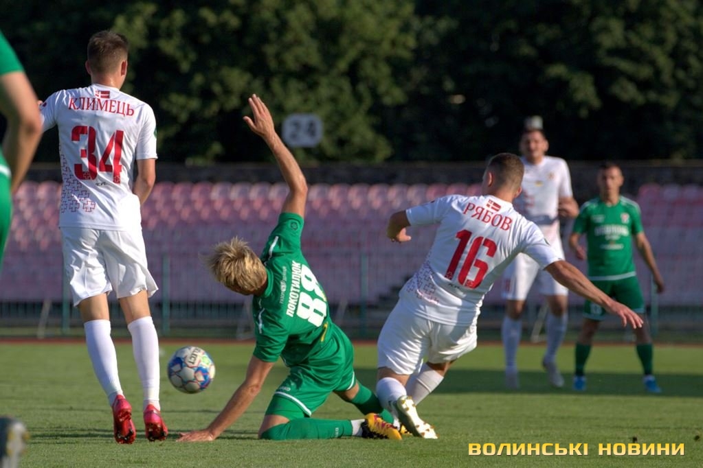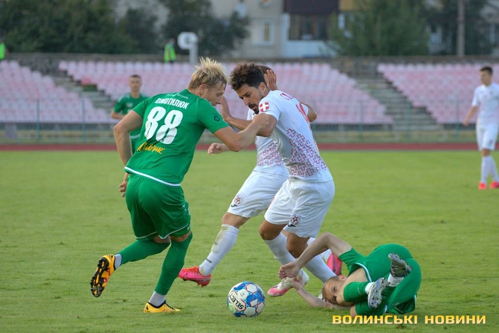 Відзначимо, що у «Волині» через пошкодження покинув поле ветеран Тарас Михалик, місце центрбека зайняв Василь Курко.