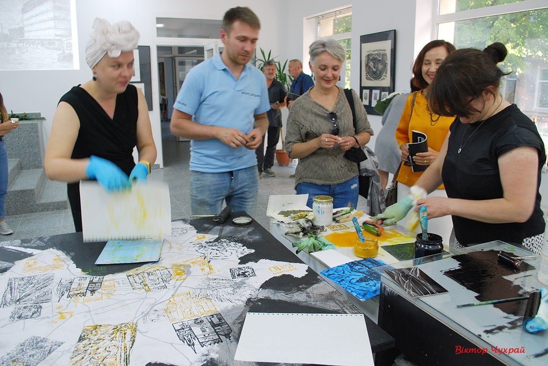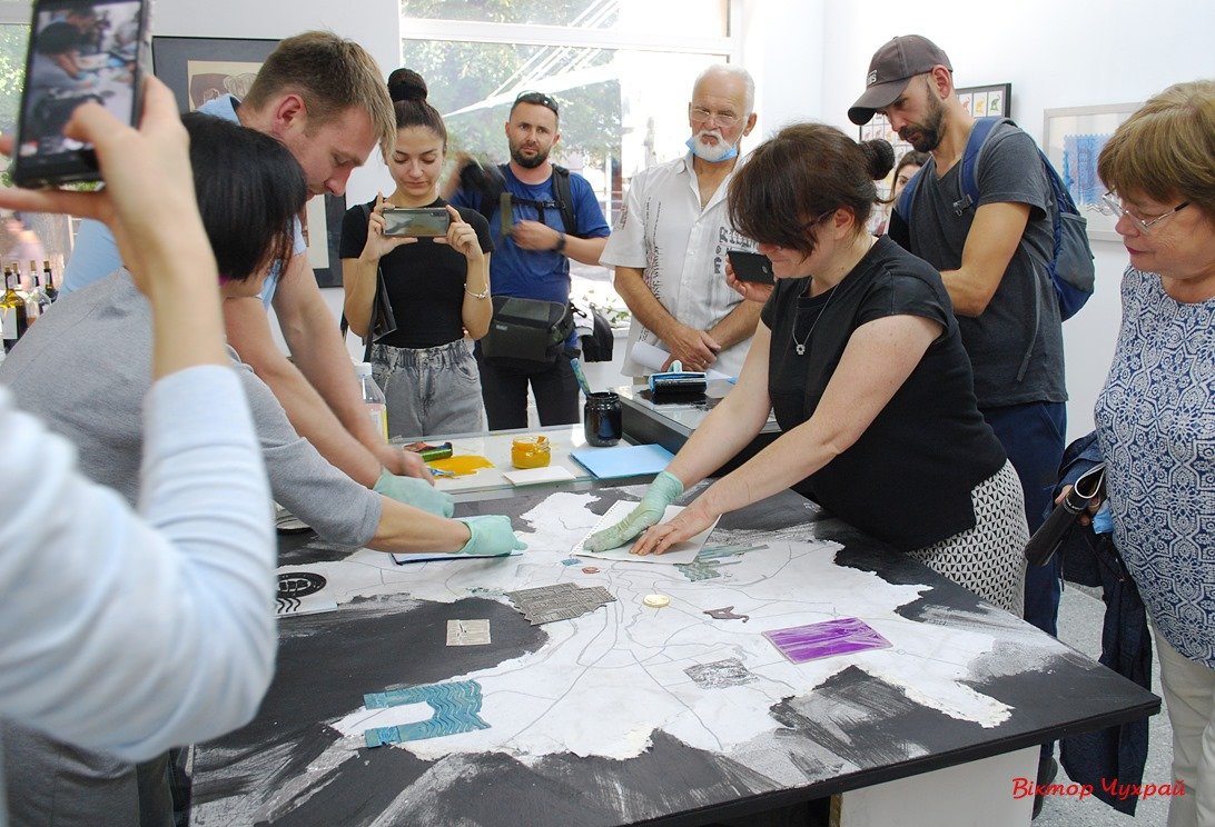 Особливою частиною зустрічі стала співтворчість авторів проєкту з глядачами, коли відбулося створення великого відбитку на карті міста, який складався із серії окремих відбитків із символічними локаціями Луцька. Ця акція не лише показала технічні особливості графіки, а й символічно продемонструвала співзвучність і єдність лучан у відданості рідному місту.Влучною метафорою в контексті події прозвучали поетичні рядки її гостя, відомого волинського літератора Миколи Шостака: «Графічна поліфонія увічнює цю мить! Вся Лучеська Симфонія в цих образах звучить». Синергію різних видів мистецтва – графіки, музики, поезії – відчули глядачі при перегляді сучасних творів і ретроспективи, під час створення спільного відбитку.Виставка «Графіка в межах міста», яка відкрилася 12 вересня в Галереї мистецтв, триватиме протягом 3 тижнів, тому переглянути наживо ці твори буде можливість у всіх поціновувачів цієї вишуканої класичної техніки. Відвідання галереї обов’язкове у масках, з дотриманням соціальної дистанції. Приємного і безпечного спілкування з мистецтвом!Фото події Віктора Чухрая