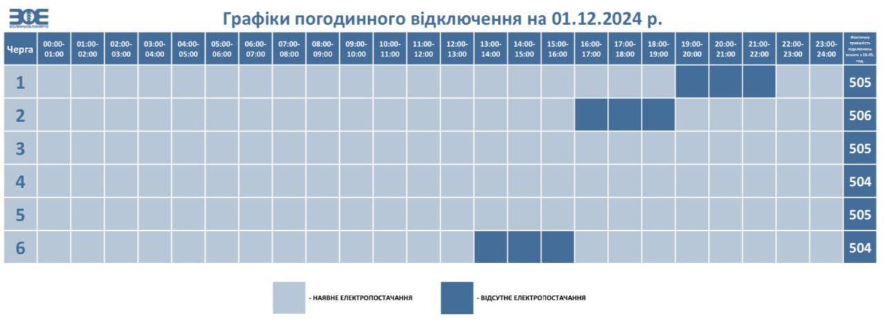 У разі відміни НЕК «Укренерго» обмежень у певні години протягом дня, загальний час коригується з урахуванням фактичного часу відключення черг та відображається у графіку на наступний день.