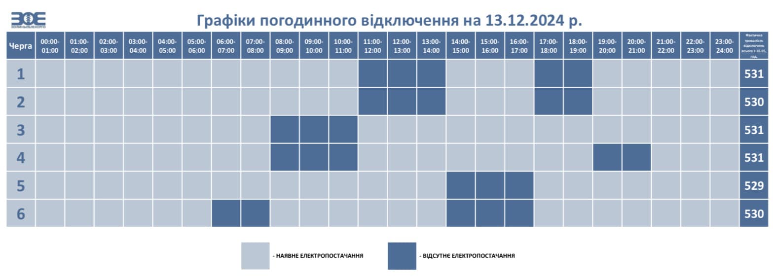 У разі відміни НЕК «Укренерго» обмежень у певні години протягом дня, загальний час коригується з урахуванням фактичного часу відключення черг та відображається у графіку на наступний день.