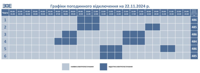 У п’ятницю, 22 листопада, у Волинській області діятимуть графіки погодинного відключення електроенергії. НЕК «Укренерго» встановило обмеження споживання електричної енергії на території області з 6:00 до 22:00.