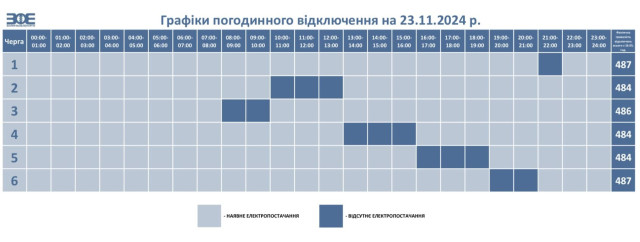У разі відміни НЕК «Укренерго» обмежень у певні години протягом дня, загальний час коригується з урахуванням фактичного часу відключення черг та відображається у графіку на наступний день.