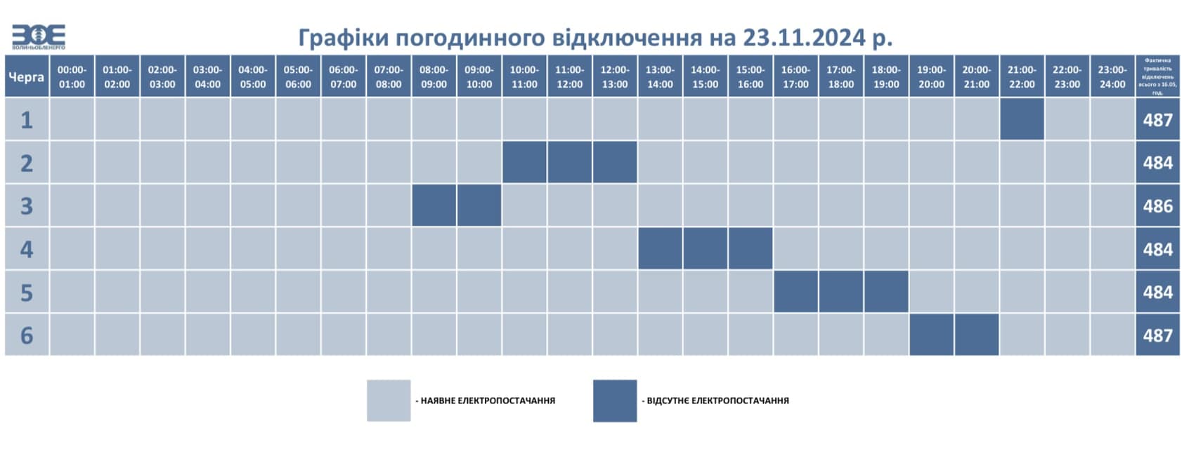 Час відключення та відновлення електропостачання може відрізнятись від заявленого у ГПВ на 20-30 хвилин. Таке відхилення пов’язане із технологічним процесом перемикання черг службами «Волиньобленерго».