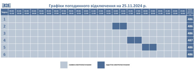 У понеділок, 25 листопада, листопада у Волинській області діятимуть графіки погодинного вимкнення електроенергії.