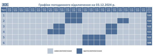 У разі відміни НЕК «Укренерго» обмежень у певні години протягом дня, загальний час коригується з урахуванням фактичного часу відключення черг та відображається у графіку на наступний день.