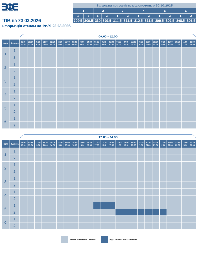 Графік вимкнення електрики на Волині 23 березня