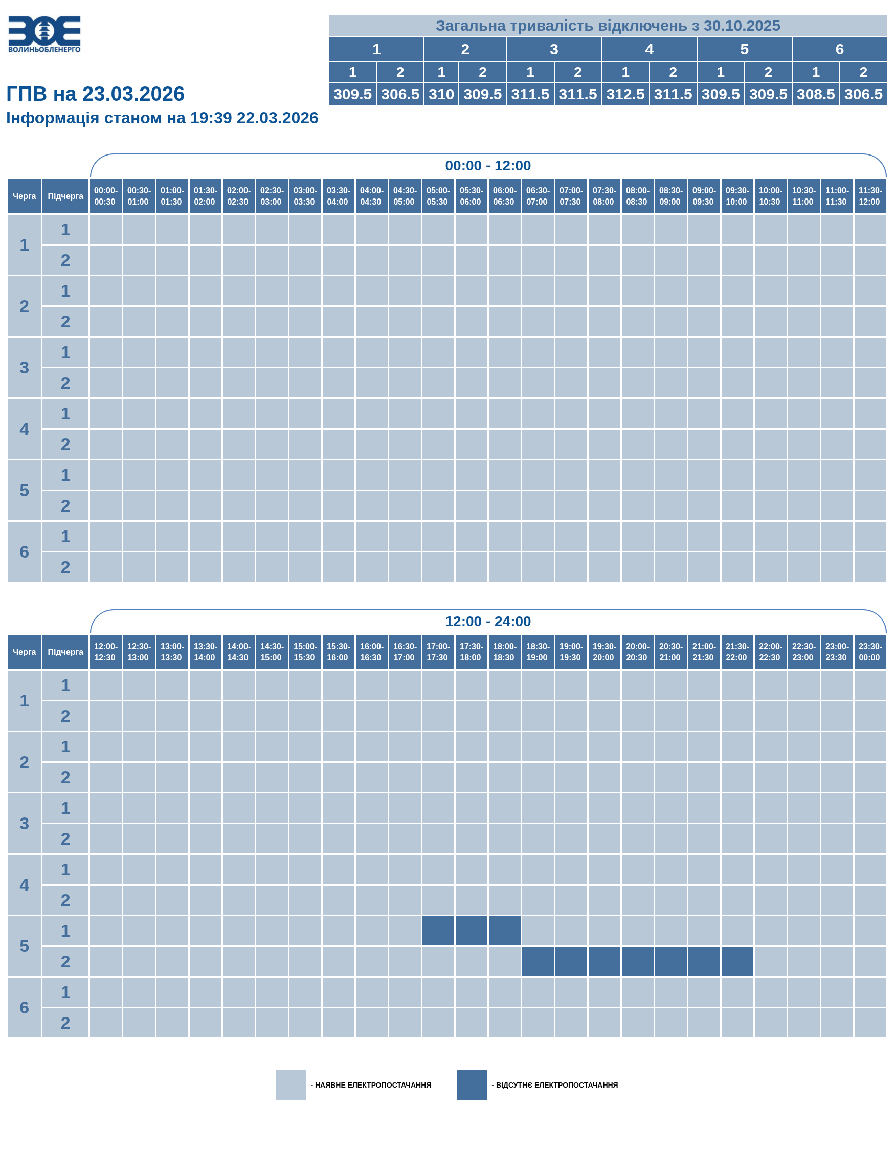 Графік вимкнення електрики на Волині 23 березня