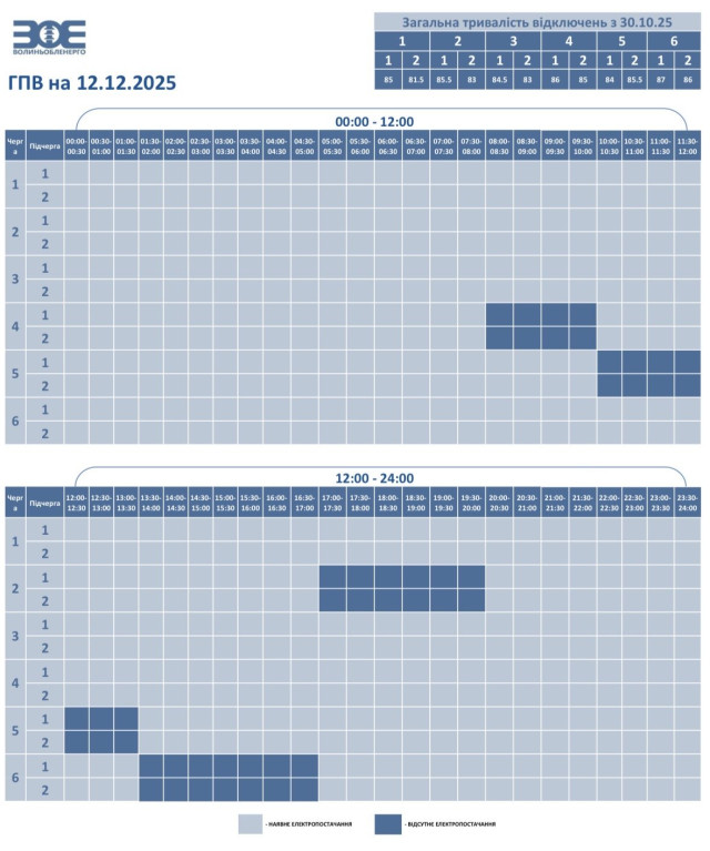 Графіки вимкнення електроенергії на Волині 12 грудня