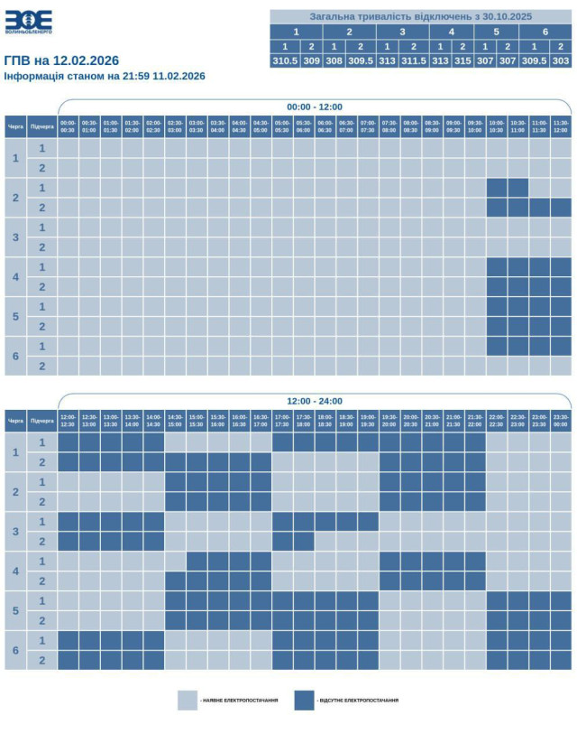 Графіки вимкнення електроенергії на Волині 12 лютого. Оновлено