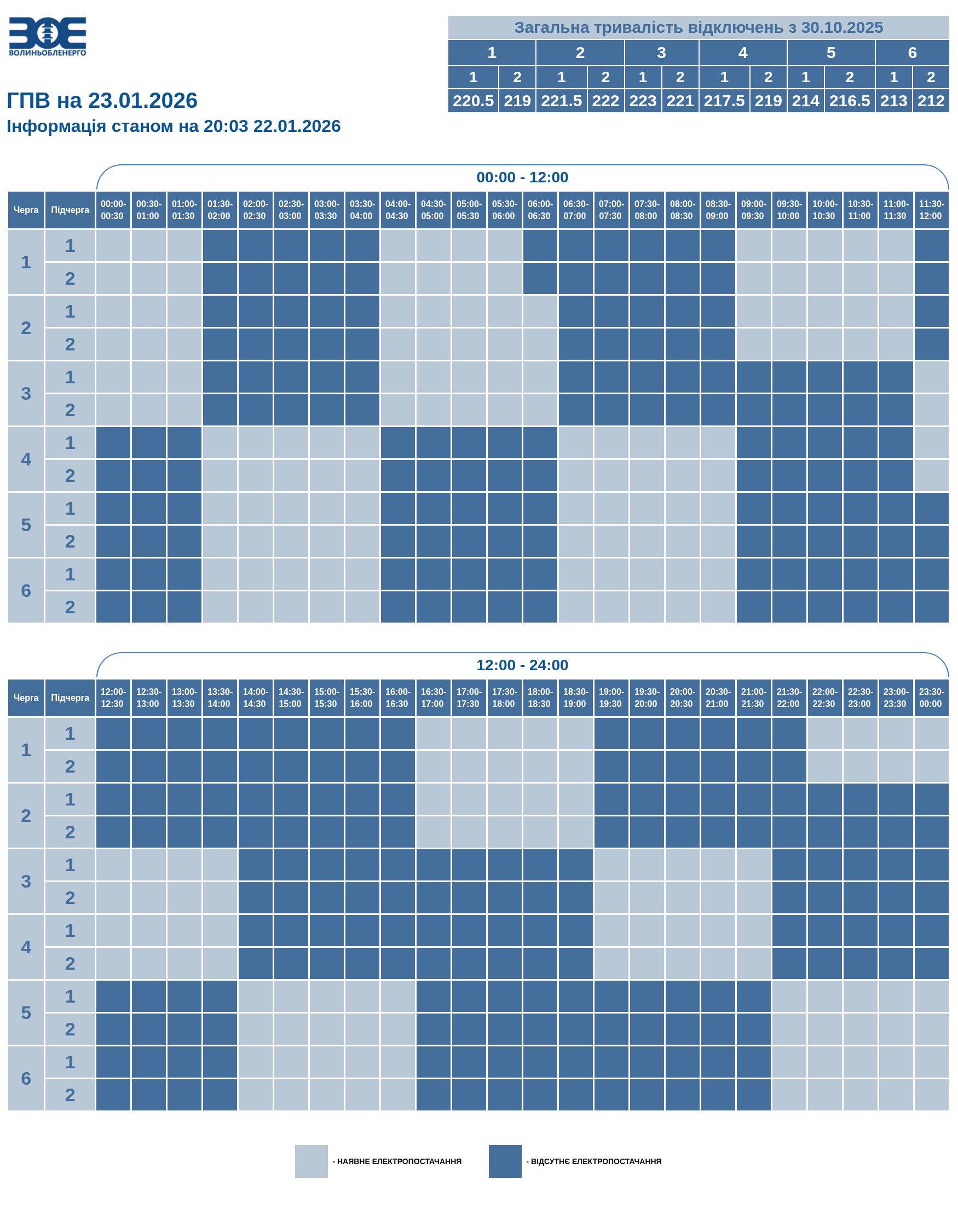 Час вимкнення та відновлення електропостачання може відрізнятись від заявленого у графіку на 20-30 хвилин. Таке відхилення пов'язане із технологічним процесом перемикання черг службами «Волиньобленерго».
