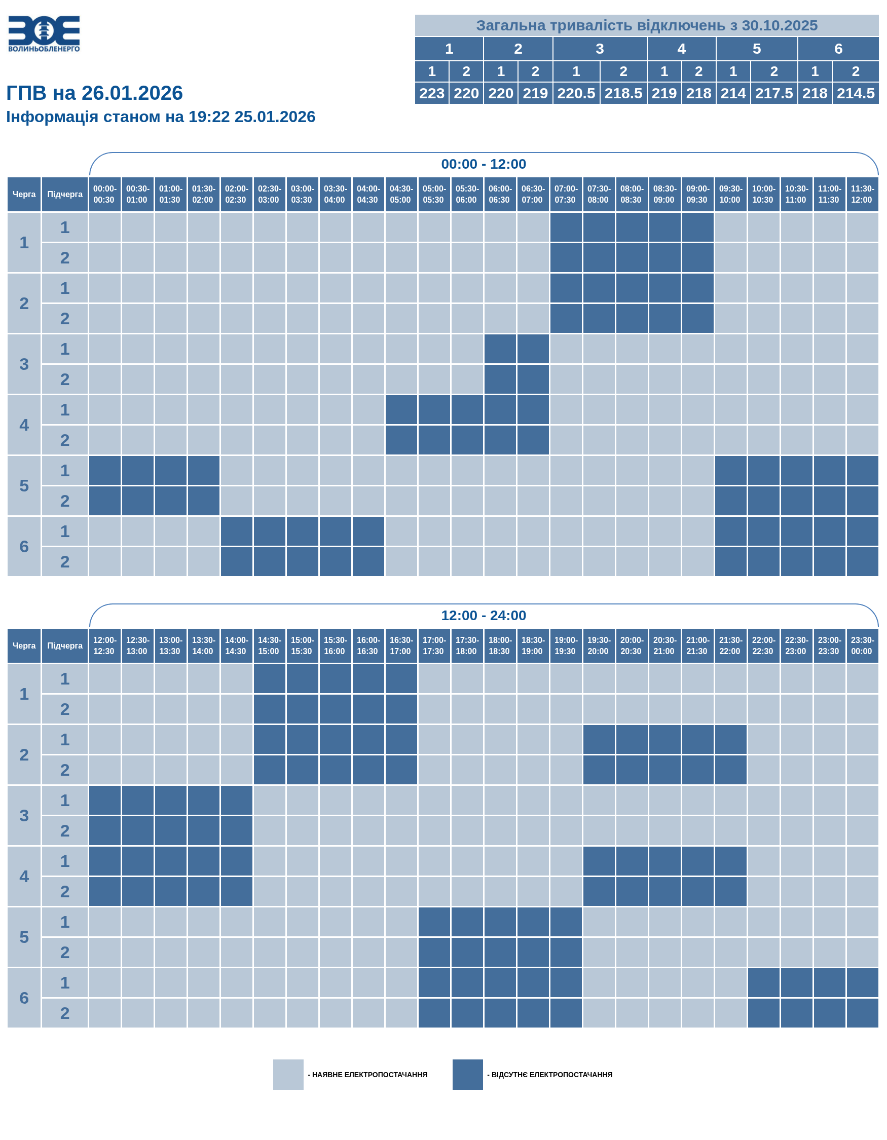Час вимкнення та відновлення електропостачання може відрізнятись від заявленого у графіку на 20-30 хвилин. Таке відхилення пов'язане із технологічним процесом перемикання черг службами «Волиньобленерго».