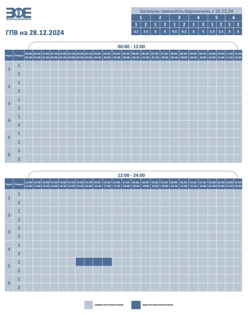Час відключення та відновлення електропостачання може відрізнятись від заявленого у ГПВ на 20-30 хвилин. Таке відхилення пов’язане із технологічним процесом перемикання черг службами «Волиньобленерго».