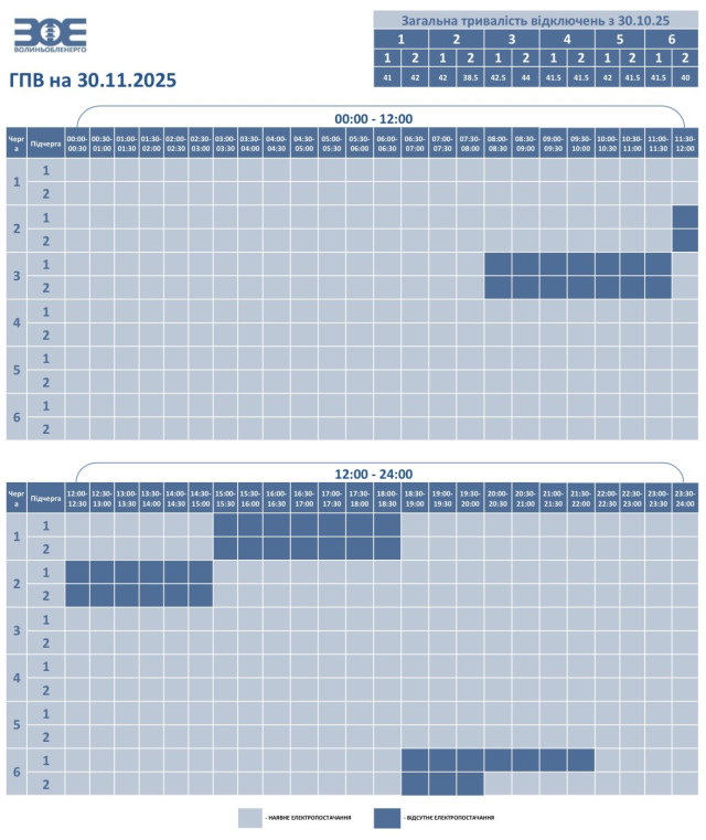 Час відключення та відновлення електропостачання може відрізнятись від заявленого у графіку на 20-30 хвилин. Таке відхилення пов’язане із технологічним процесом перемикання черг службами «Волиньобленерго».
