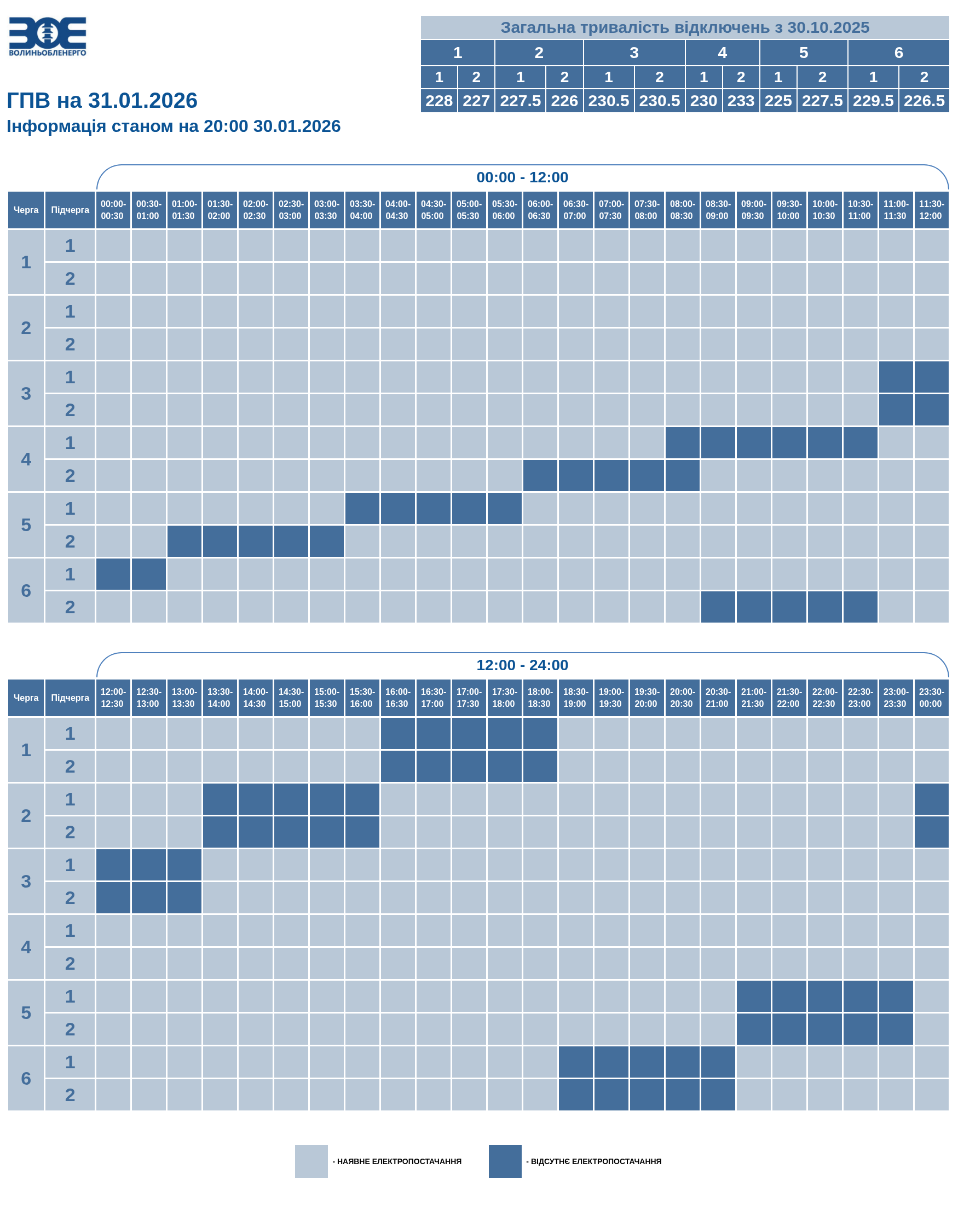 Час вимкнення та відновлення електропостачання може відрізнятись від заявленого у графіку на 20-30 хвилин. Таке відхилення пов'язане із технологічним процесом перемикання черг службами «Волиньобленерго».