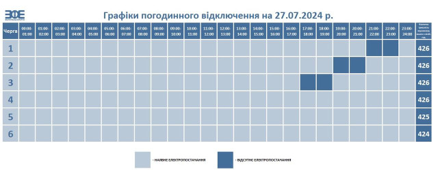 У разі відміни НЕК «Укренерго» обмежень у певні години протягом дня, загальний час коригується з урахуванням фактичного часу відключення черг та відображається у графіку на наступний день.