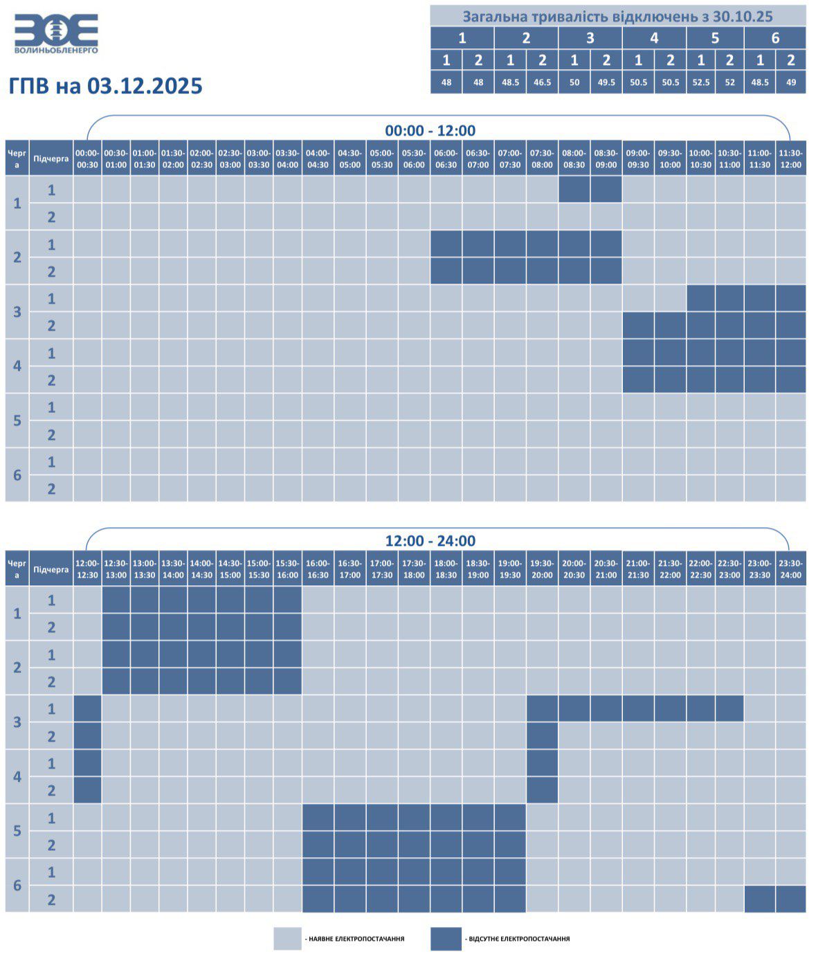 Дізнатися інформацію щодо відключень за вашою адресою можна ТУТ.Час фактичного вимкнення та відновлення електропостачання може відрізнятися на 20-30 хвилин через технологічний процес перемикання черг.