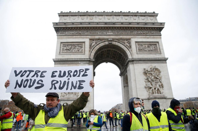 Нагадаємо, у Франції тривають акції протестів так званих жовтих жилетів, які виступають проти підвищення акцизів на паливо, податкової політики уряду в цілому і вимагають відставки президента Макрона.
