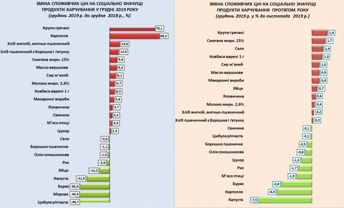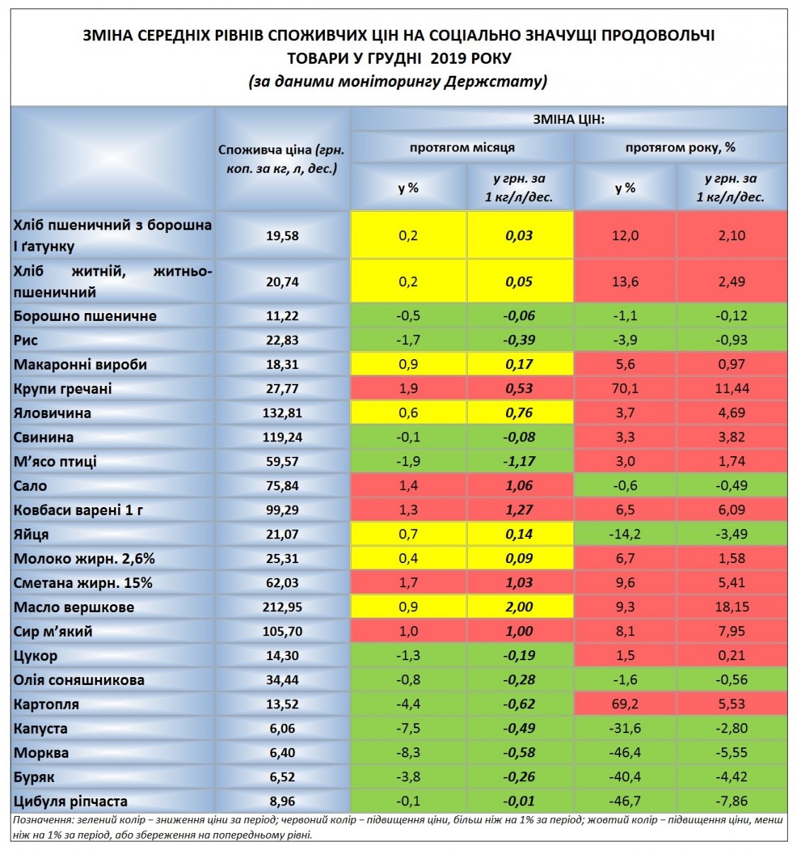 За даними Державної служби статистики, в 2019 році ціни на споживчі товари підвищились на 4,1%. Згідно з даними моніторингу за 2019 рік, в якому проаналізували 23 види соціально значущих продуктів харчування, ціни виросли на 14 позицій і знизилися на 9 позицій.