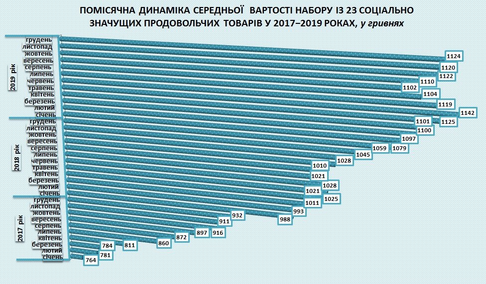 За рік вартість набору підвищилася на 4,2% (+ 45 грн) проти 11-ти відсоткового подорожчання в 2018 році, і в середньому по Україні склала +1024 гривні.