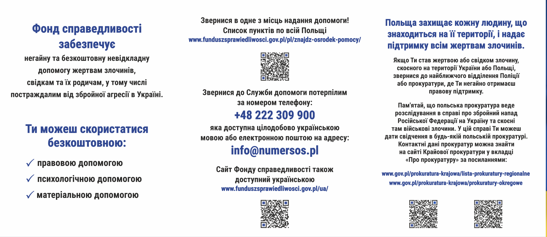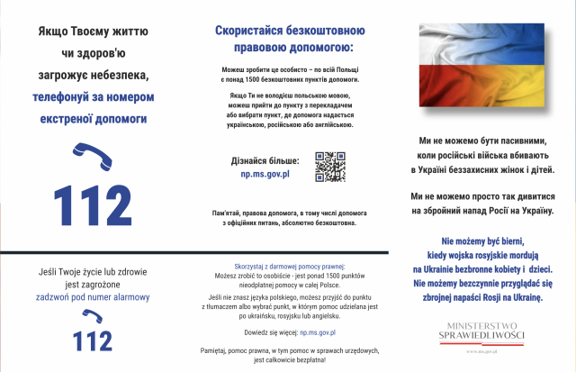 Особи, які мають таку необхідність, можуть скористатися цілодобовою лінією допомоги потерпілим за номером телефону: +48 222 309 900.