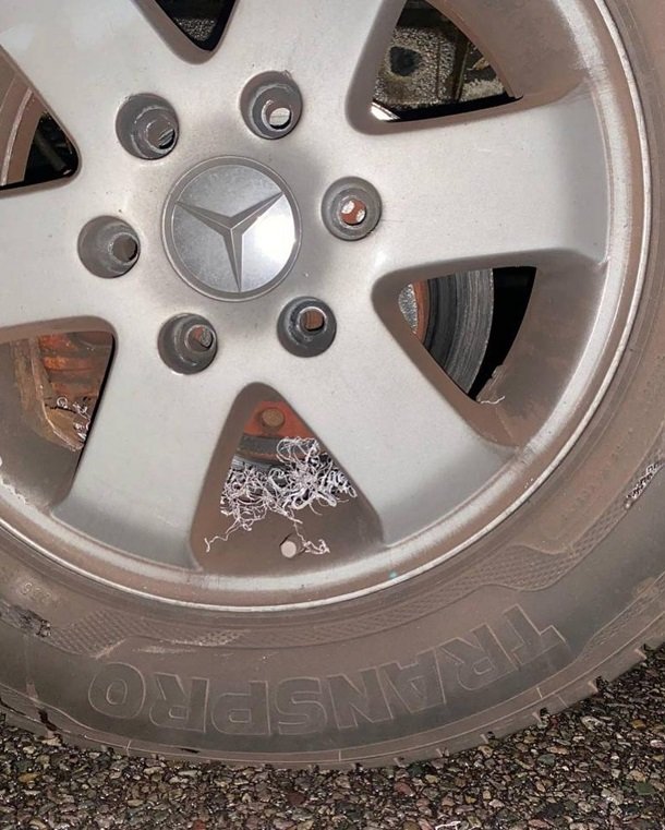 При оцінці пошкоджень було виявлено подряпини при спробі викрутити свіжозабарвлені диски та гайки на колесах.