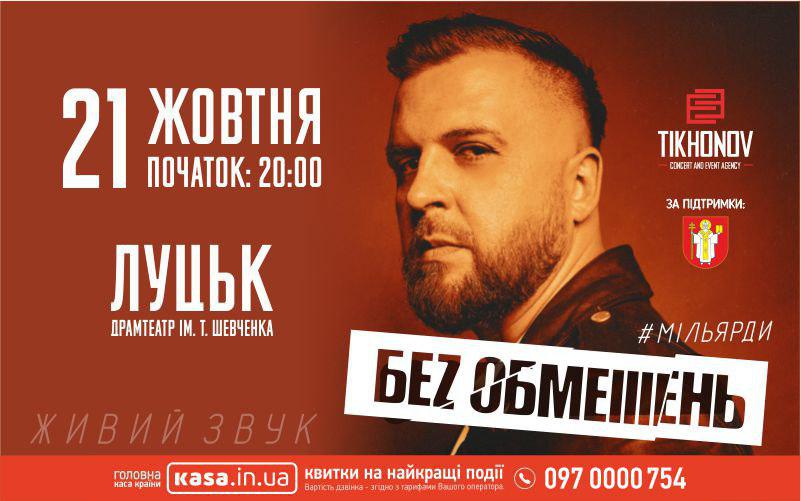 До Луцька вкотре повертаються брутальні романтики гурт «Беz обмежень». Цього разу хлопці презентують новий альбом «Мільярди».