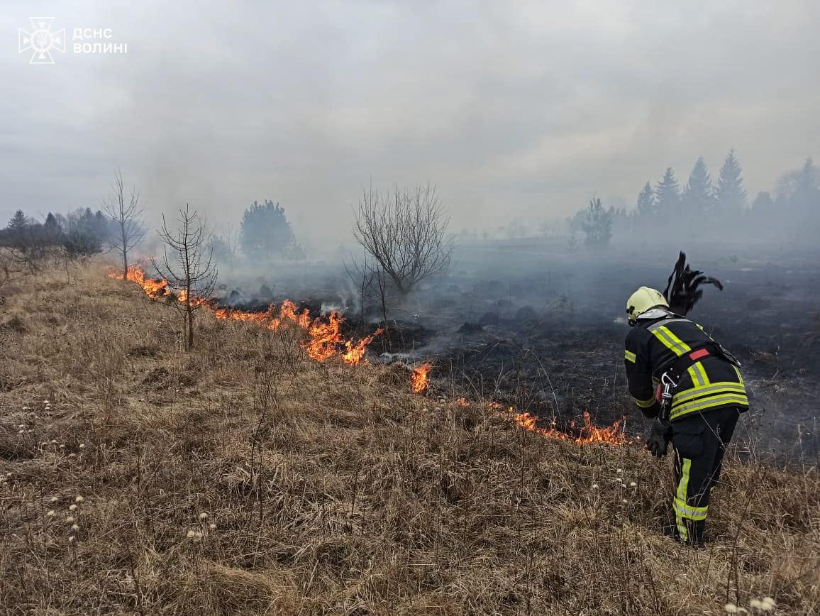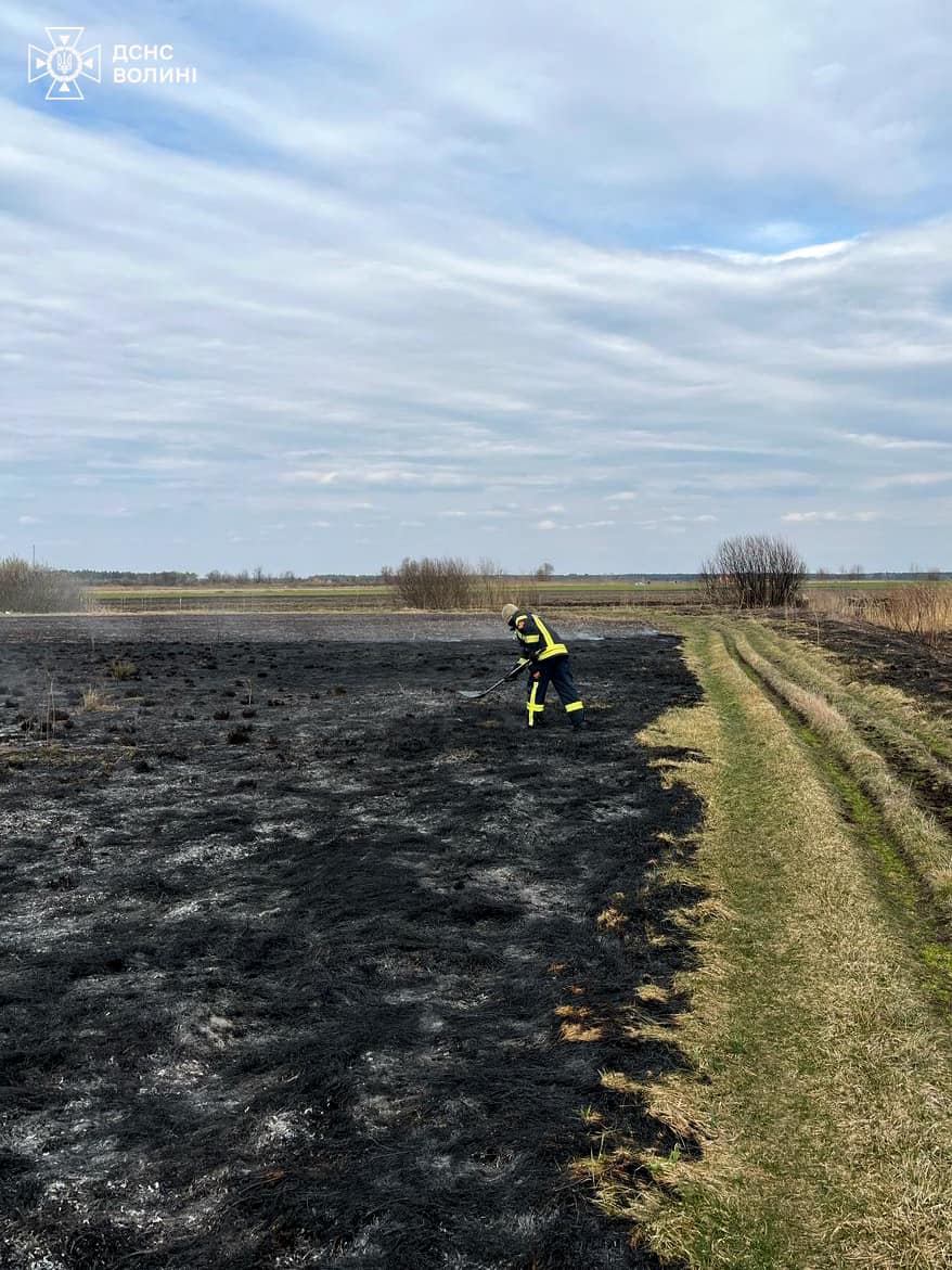 Протягом дня на території Волині зафіксовано низку пожеж сухої рослинності. Вогнеборці оперативно прибували на місця подій та ліквідовували загрозу поширення вогню.