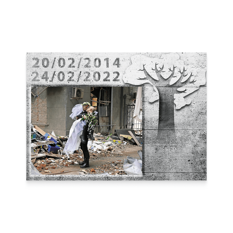 «Кохання не спинити! Харків, 2022 рік»Знімок Сергія Бобка/AFP увічнює тендітну мить кохання. Це весільне фото, зроблене навесні 2022 року в Харкові. На ньому зображена пара волонтерів-медиків у дворі зруйнованого російськими ракетами будинку.