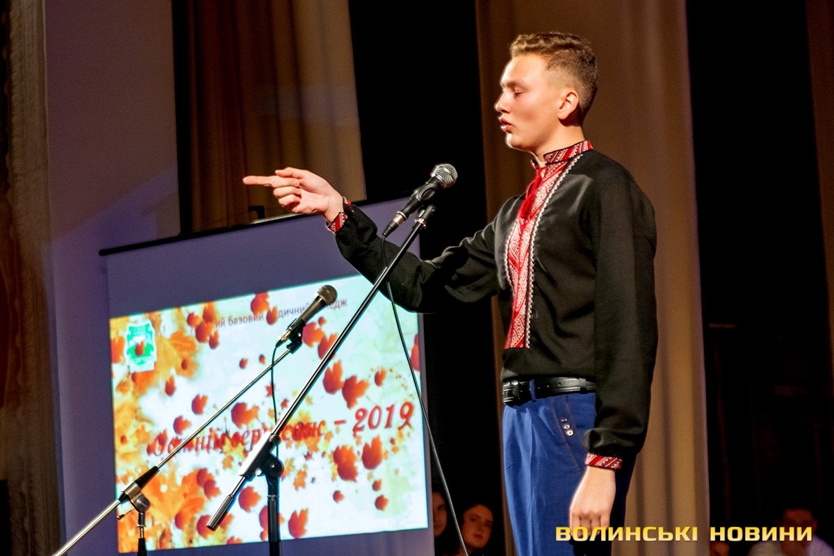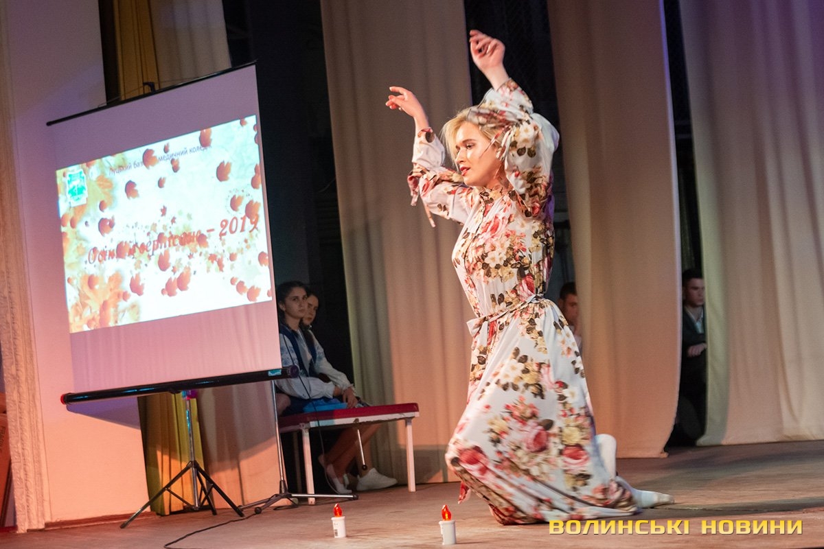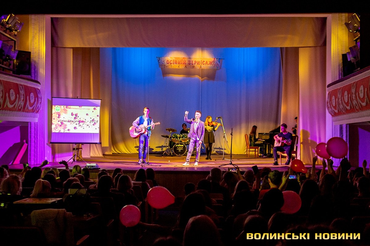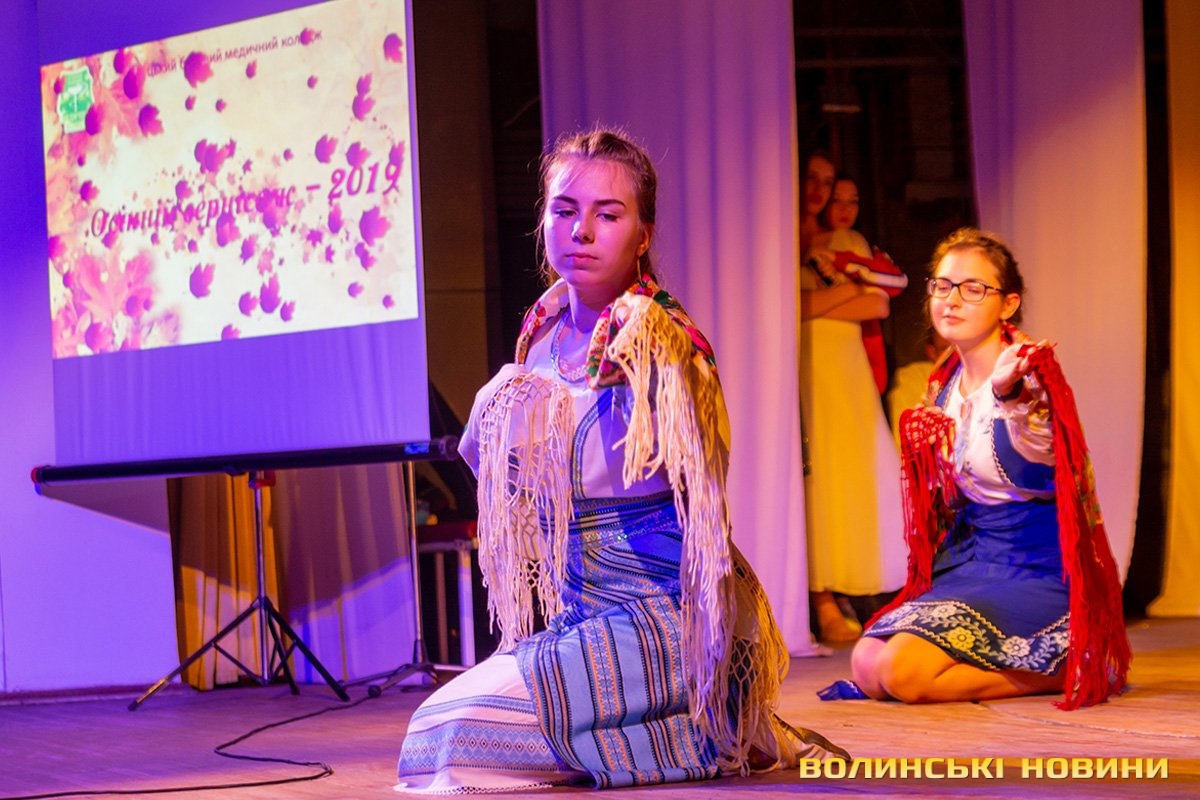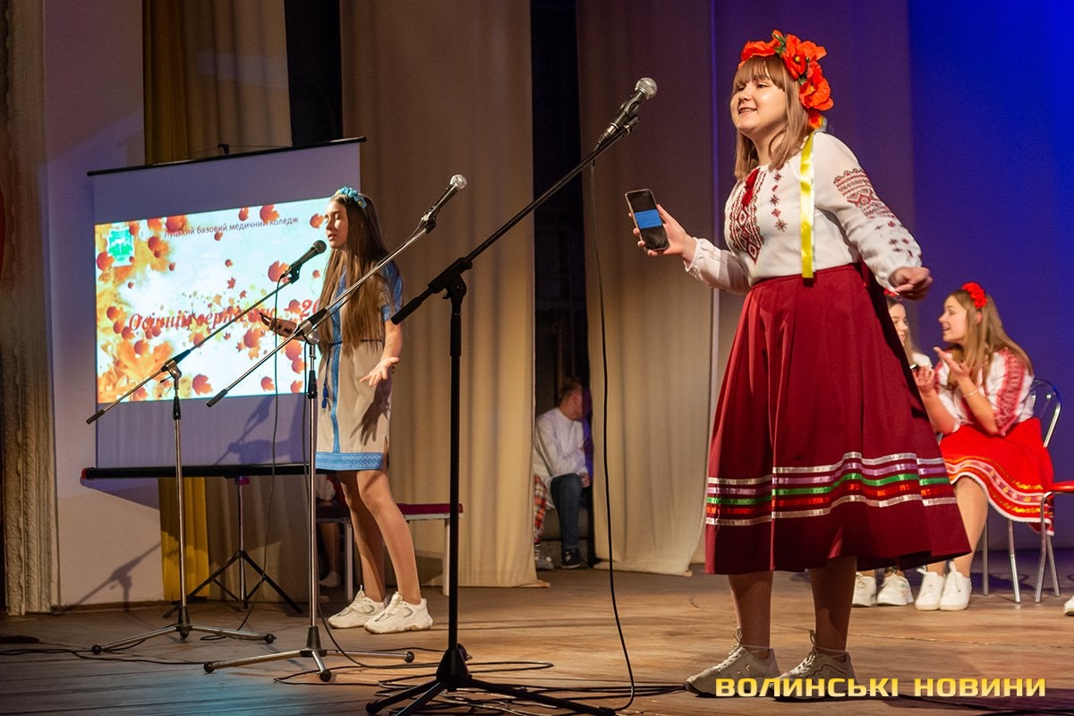 Традиційний фестиваль талантів студентів Луцького базового медичного коледжу нового набору відбувається вже 28-й рік поспіль. За цей час змінювалися музика, мода, смаки та стилі, однак незмінним залишалося прагнення педагогів зробити гарне свято для студентів.Цьогоріч на «Осінньому вернісажі» свої таланти демонструють представники 7 груп. Інсценівки, показ осінніх костюмів, танці, декламація поезії, гра на музичних інструментах, вокальні номери та презентація виробів мистецтва – першокурсники довели, що мають надзвичайно широке коло захоплень. Підготували пісенні подарунки й студенти старших курсів. Запальне виконання настільки сподобалося глядачам, що вони декілька разів викликали співаків «на біс».Рівень артистизму учасників вернісажу оцінювало суворе, але справедливе журі. До його складу ввійшли: колишній директор коледжу Зіновій Крижанівський, виконувачка обов’язків директорки навчального закладу Тетяна Пастрик, заступниця директора з гуманітарної освіти та виховання Алла Лазько, заслужена працівниця освіти України Раїса Федосова, голова студентської ради Світлана Смаль.Під час урочистої миті вручення дипломів Тетяна Пастрик подякувала усім, хто доклав зусиль аби організувати та провести свято талантів.
