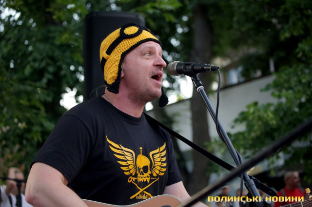 Розкажу вам анекдот. Хлопчик повертається зі школи і каже: «Мама, а мене Сєрьожка навчив класну пісеньку «Путін – х**ло ла-ла-ла-ла». А мама відповідає: «Ти що, синку, не можна казати Сєрьожка, треба говорити Сергійку», – пожартував Юрій Журавель.Гурт виконав чимало запальних пісень, зокрема трек «Морська піхота», слова до якого написав волинянин Олександр Положинський. Також з вуличної сцени прозвучал «Накурила баба журавля», «Сімнадцять москалів» і пісня без фіналу «Чонобаївка», в якій багато серій.«І знову поперли тупі москалі… Це Чорнобаївка», – співали гурт Ot Vinta та лучани, які не лише отримали багато позитивних емоцій від концерту, а й допомогли ЗСУ.