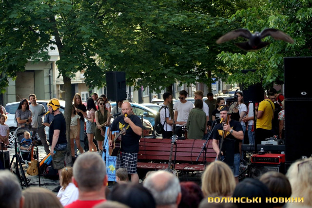 «І знову поперли тупі москалі… Це Чорнобаївка». У центрі Луцька гурт Ot Vinta збирав гроші на ЗСУ. Фото