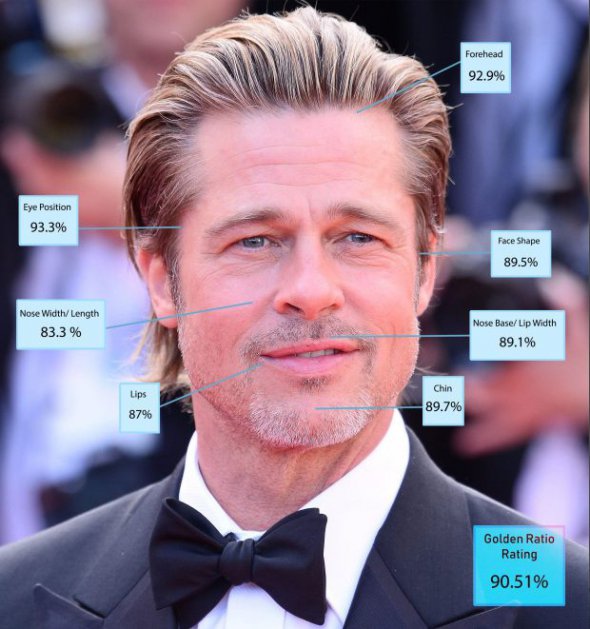 Четвертим у рейтингу став знаменитий безліччю ролей і втілень голлівудський красень, екс-чоловік Анджеліни Джолі Бред Пітт. Його результат також знаходиться трохи вище 90 відсотків - 90,51 відсотка "ідеальності" по "золотому перетину".