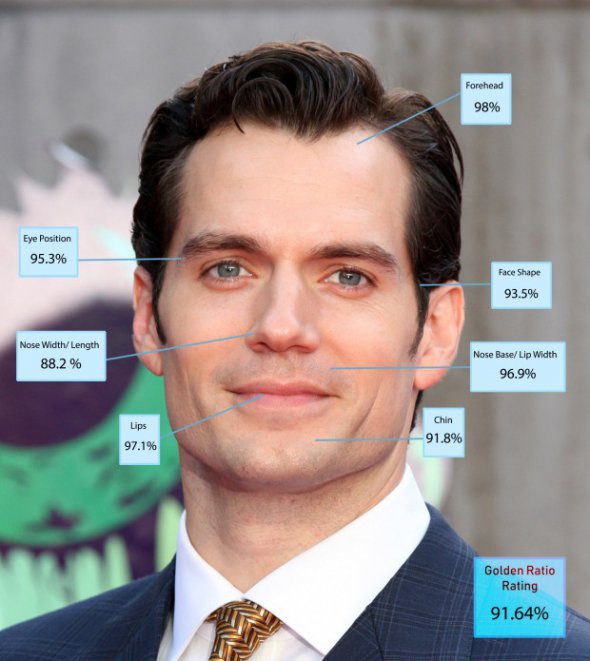 Другу сходинку п'єдесталу найбільш привабливих зірок з точки зору математики зайняли Тесей, супермен і відьмак красень-англієць Генрі Кавілл, популярність якого останнім часом тільки зростає, а авторитет зміцнюється - 91,64 відсотка від ідеалу по "золотому перетину".