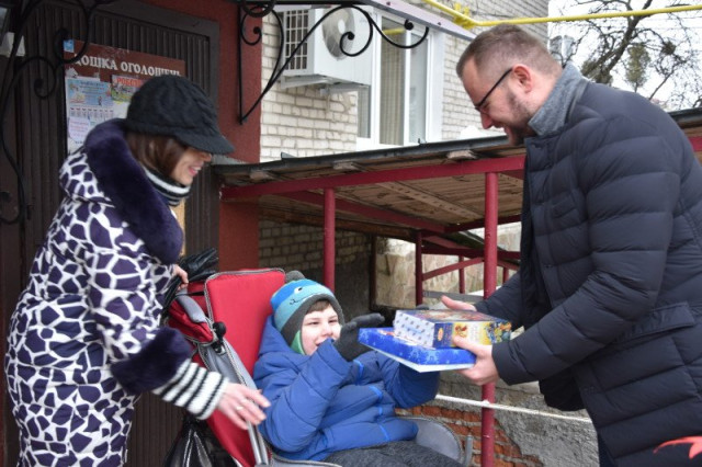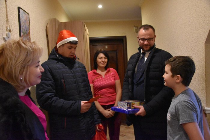 Сьогодні, у День Святого Миколая, радник міського голови, депутат міської ради Ігор Поліщук, начальник управління соціальних служб для сім’ї, дітей та молоді Ліна Галан та “помічники Святого Миколая” відвідали діток з особливими потребами, вручили їм подарунки та продуктові набори.