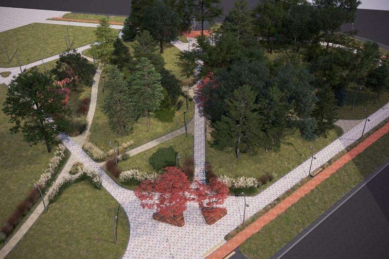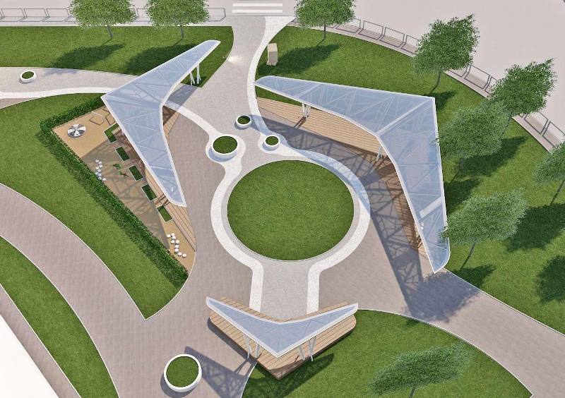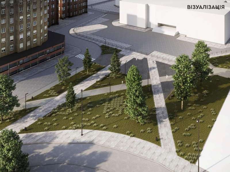 Так виглядатиме сквер біля готелю «Профспілковий»Проект скверу авіаторів на проспекті Грушевського