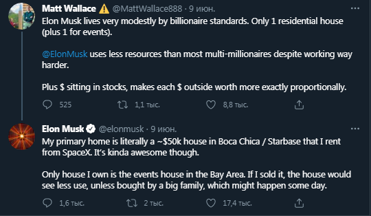 «Мій основний будинок – це буквально халупа за півсотні тисяч доларів у Бока-Чіка, на Starbase, який я орендую у SpaceX. Це досить круто», – розповів він у відповідь на запитання користувача.Раніше повідомляли, що Ілон Маск має намір створити в штаті Техас нове місто під назвою Зоряна база (Starbase).