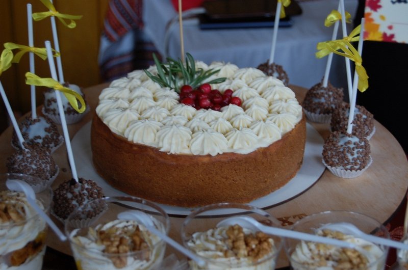А ще на фестивалі - надзвичайно потужна виставка кулінарних страв учнів професійно-технічних закладів. І це, вважає Ольга Завадська, сигнал для роботодавців. Так, чи не найбільше тут представлено солодкої випічки, яка дивує різноманіттям рецептів та оформленням.Група студенток 3 та 4 курсу із Волинського коледжу харчових технологій зробили виставку десертів власного виробництва. Тут і тістечка, і торти – усе надзвичайно кольорове та смачне, запевняють дівчата.