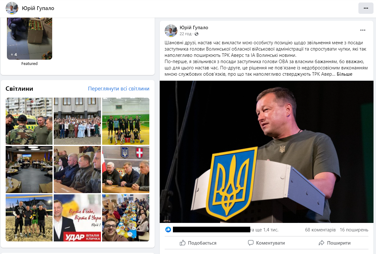 Імітація підтримки: щоби повірили виправданням у Фейсбуці, ексзаступнику голови Волинської ОВА Гупалу замовили ботоферму