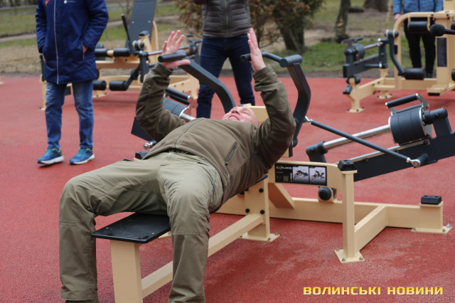 У Луцьку, до слова, діє національний проєкт безоплатної спортивної реабілітації для ветеранів «ТренВет». Представники ветеранської команди обласного центру вже випробували тренажери.Привітав лучан із відкриттям майданчика голова громадської організації «Рух справжніх» Максим Денисенко.