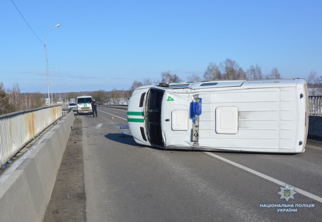 Правоохоронці з’ясували, що за кермом автомобіля «Mersedes Sprinter» перебував 49-річний водій-інкасатор. Ймовірно, він не впорався із керуванням та здійснив наїзд на відбійник, після чого автомобіль перекинувся. Внаслідок автопригоди водій, 32-річний і 20-річний пасажири отримали тілесні ушкодження, не госпіталізовувалися.